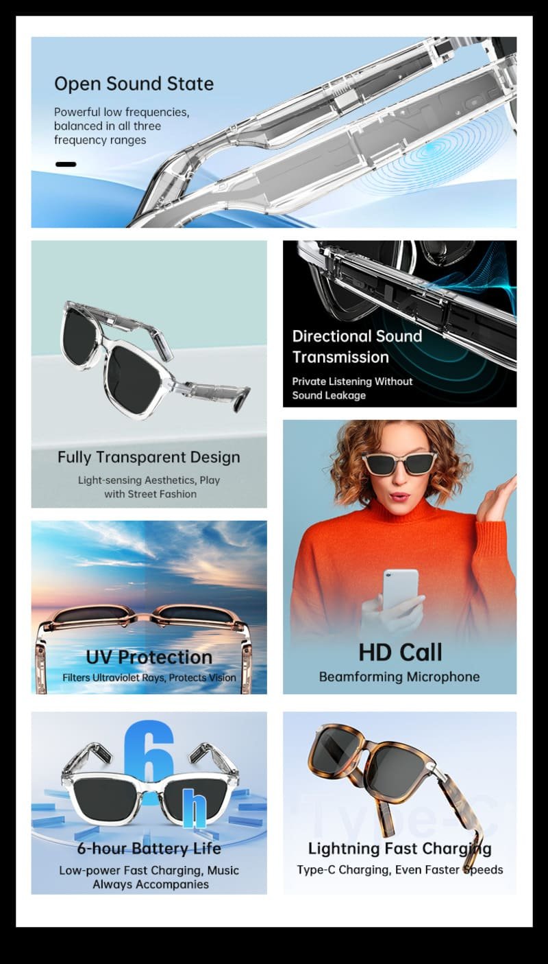 G01 Music Smart Glasses Touch Control Hand Free Calling Voice Control Smart Wearable Headset Women Men Outdoor Sunglasses